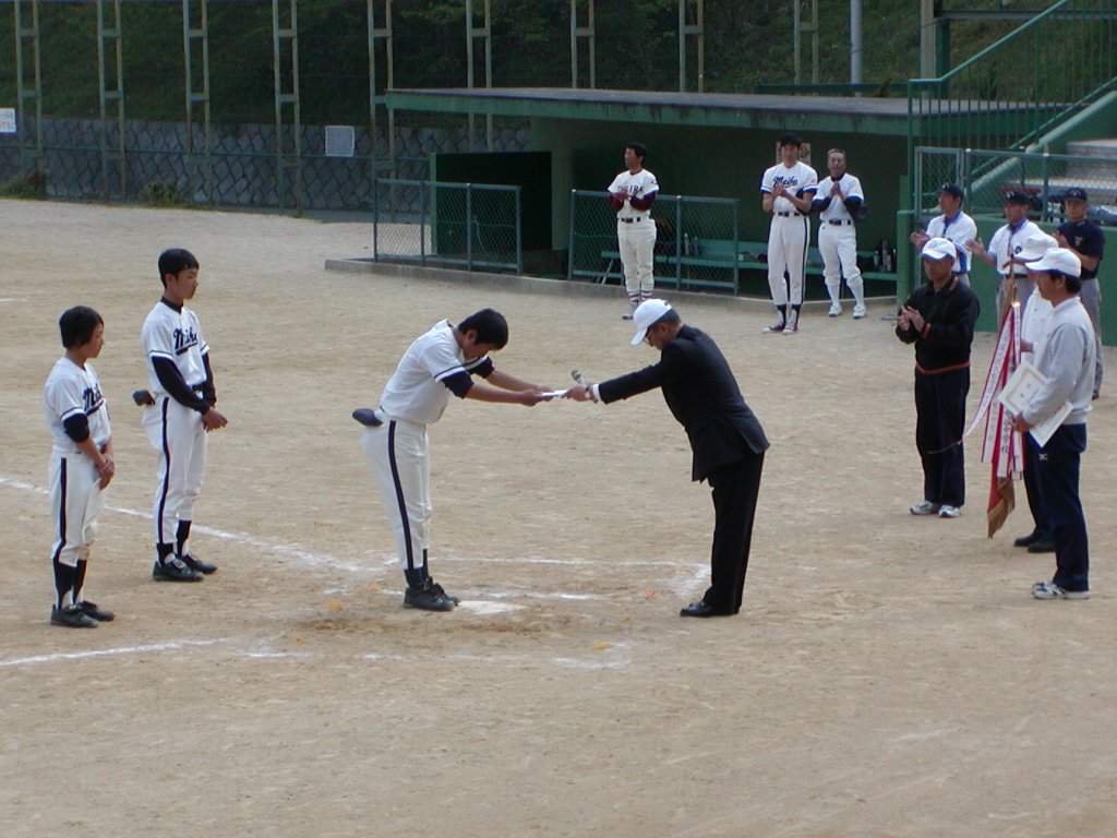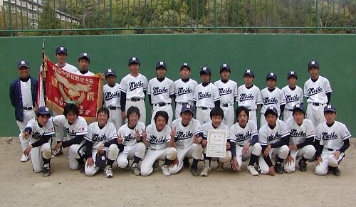 | この度の「平成19年度北摂中学校総合体育大会」において明峰中学校野球部は見事優勝する事が 出来ました 今大会では1回戦で伊丹市春季大会優勝校の笹原中学校さん、2回戦では強豪宝塚市立宝塚第1 中学校さんとの対戦となりいづれの試合も緊迫した接戦となりました 1回戦笹原中学校戦では相手の強力打線の洗礼を浴びて4-0とリードされる苦しい展開となりましたが その後驚異の気迫と集中力で試合を逆転し勝利しました この試合はチームにとって大きなターニングポイントとなり精神的にも明らかに以前より一回り大きく成長、 それがチームのまとまりと部員達の自信となり準決勝戦での再度の逆転劇に繋がったと思います 今回の優勝は試合の結果としてももちろん大変嬉しく誇らしい事ではありますが部員達がこのように心身 ともに成長した事が何よりも嬉しく思います このように中学校において直接ご指導下さっている谷崎監督様、下前ヘッドコーチ様、いつも応援に来て 下さる足立校長先生や顧問の先生方をはじめ明峰中学校の皆様に衷心より厚く感謝しお礼申し上げ ます 有難うございます また少年野球においてご指導を賜り卒団後も常日頃からご指導・アドバイスを頂いております高木監督 様、下村コーチ様、阪本コーチ様をはじめ多くの皆様からご声援を頂き誠に有難く深く感謝し厚くお礼 申し上げます 次の夏季大会では県大会出場が懸かっています 今後とも引き続き皆様のご声援をどうかよろしくお願い申し上げます この度は本当に有難うございました |