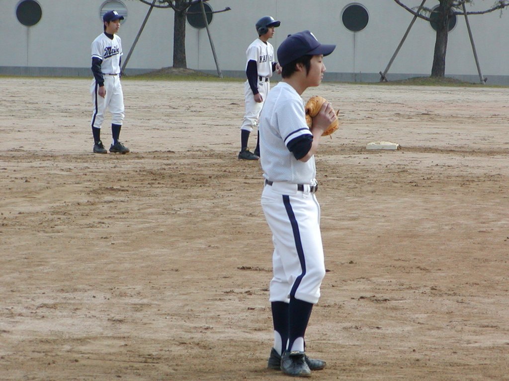 先頭7番は二ゴロでまず一死、投手竹島・2塁安岡・1塁中野だがや |