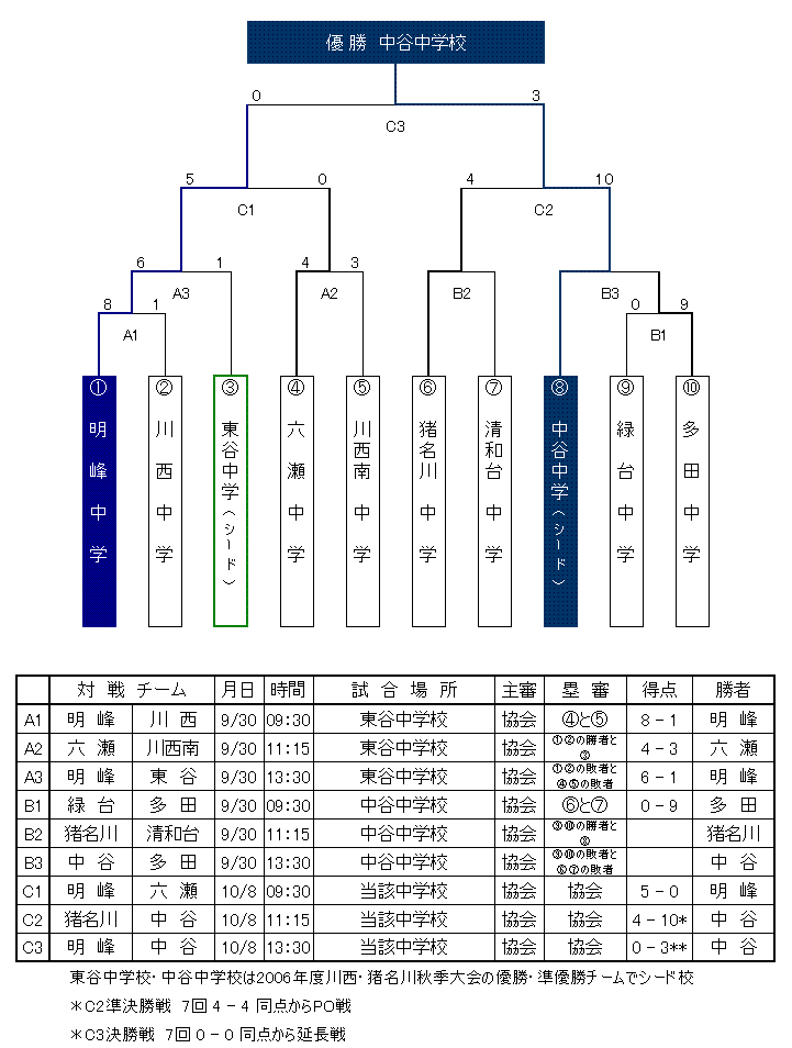 (シード校: 平成18年度(2006年)川西市猪名川町秋季大会の優勝&準優勝校)