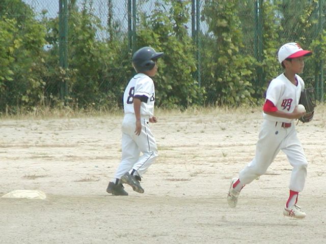 大川2塁手1塁へ送球 |